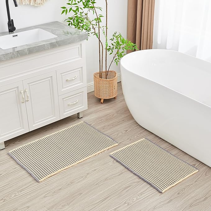 - 【Ultra Absorbent & Quick Dry】 Experience exceptional water absorption with our premium bath rugs. The Unique polyester blended yarn efficiently wicks away moisture, leaving your feet dry and comfortable in a matter of seconds. Enjoy the convenience of a fast-drying bath rug that enhances your daily routine.