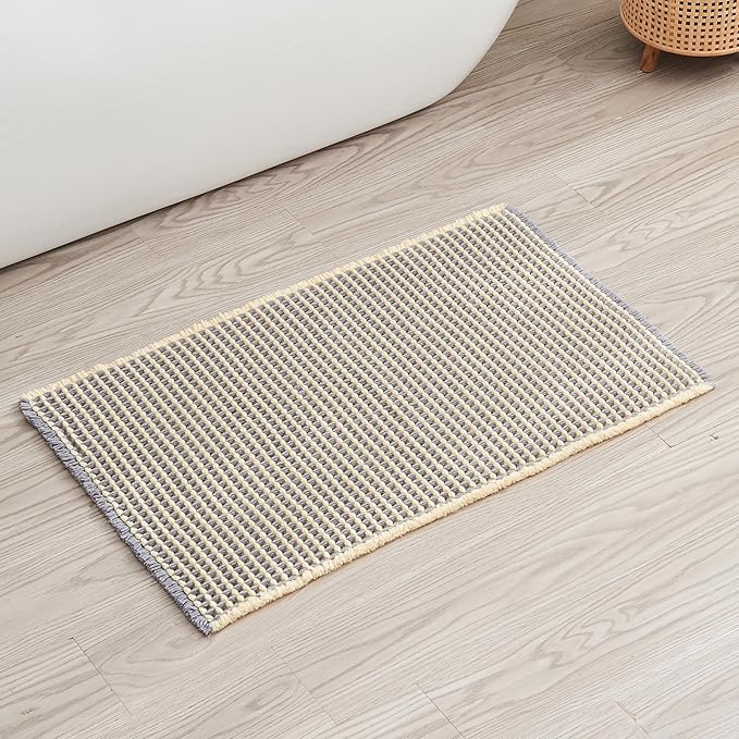 - 【Widely Used】The Douceur Waffle bathroom rug come with different colors and sizes creating a look of elegance to complement your decor. Also, it can be widely used as a bath mat, bathtub mat, bathroom rugs, door mats, bedroom rugs, dog bath mats, and foot bath mats. Wide Versatility. This is a multifunctional rug. Put them in living room to sit, in the entry way to keep the dust away from your house.