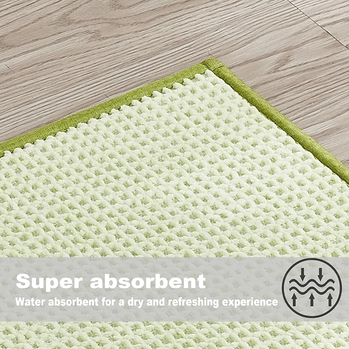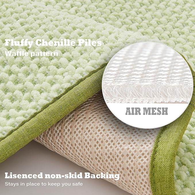 - 【Ultra Absorbant & Quick Dry】With polyester, acrylic and viscose yarn, our waffle chenille bath mat boasts a unique water-absorbing feature that efficiently wicks away moisture, leaving your feet dry and comfortable in seconds. The breathable mesh bottom is designed so that you can dry quickly after washing.