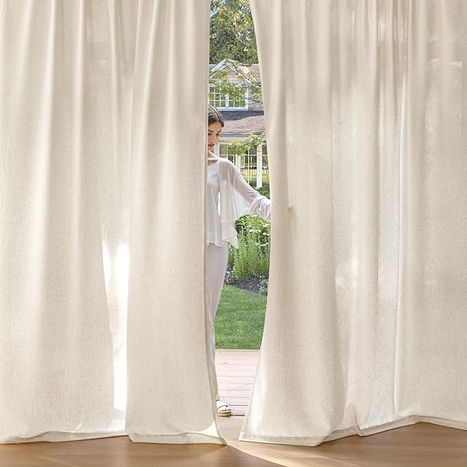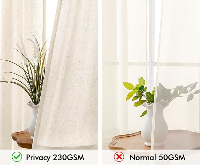 - PRIVACY CURTAINS: Our 230GSM thicker linen curtains are perfect for filtering light. These weave blend linen curtains diffuse glare harsh sunlight but are not see-through, which provides a safe space and ensures your neighbors can't see what's happening inside