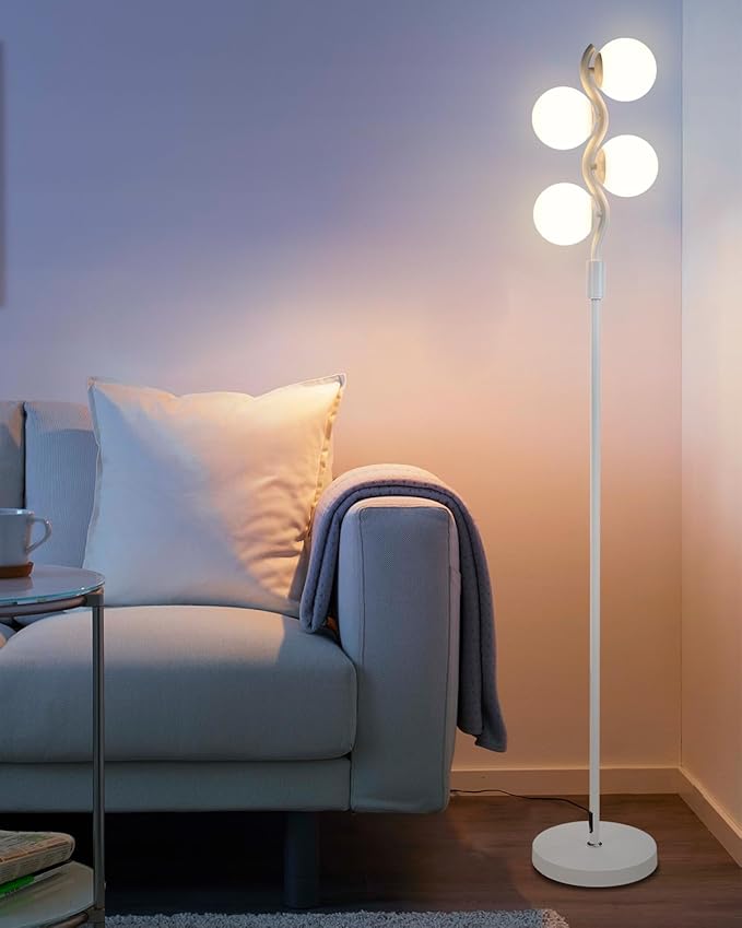 - Unique & Exquisite Design: The farmhouse floor lamp measures 60IN high. 3 sphere lights are scattered on S-shaped pole, combined with elegant and minimalist golden metal structure, which can perfectly match various home decor styles.
