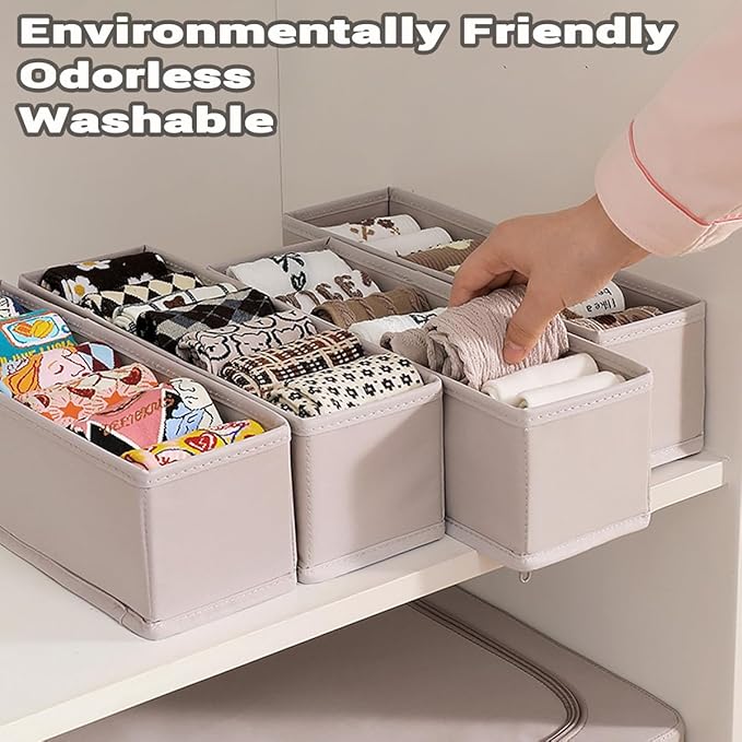 - 【Organize Easily】This 6 pcs small fabric drawer organizer bins conveniently separate your drawer into sections for storage of socks, underwear, bra, scarves, newborn baby items and accessories.