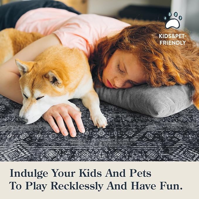 - [Non-Slip & Safe Rug] The TPE Non-Slip rubber backing can prevent our boho living room rug from moving across the floor. The strong grip of the bottom can effectively prevent children from slipping and prevent heavy traffic from scuffing the floor