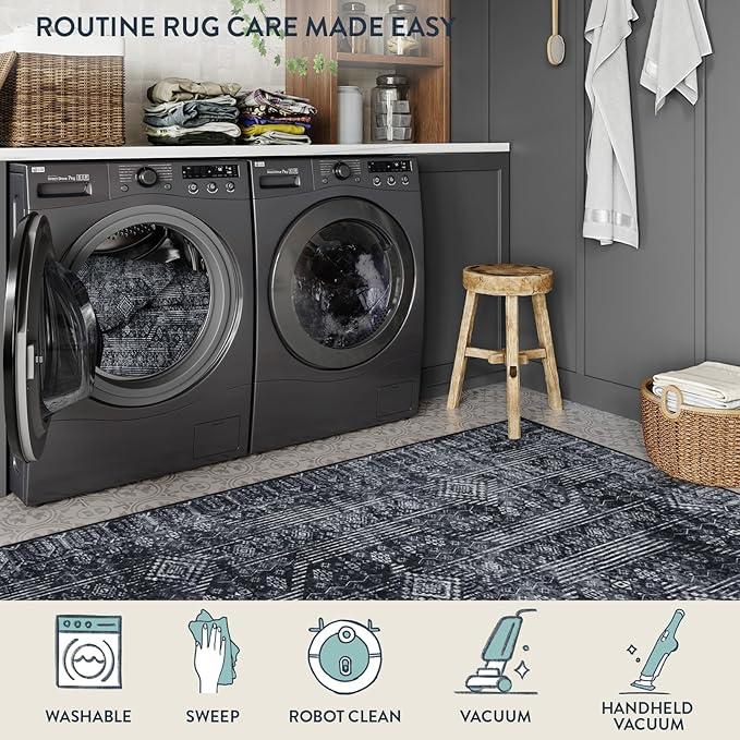 - [Machine Washable]Dust and dirt are easily removed from boho living room rug and spills can be wiped up immediately. Daily vacuum cleaning is enough. For deep cleaning, it is recommended to machine wash in cold water with a neutral detergent