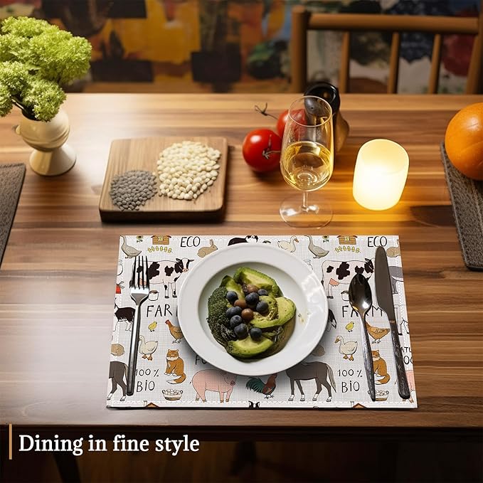 Farm Animals Cow Pig Placemats Set of 6 Place Mats for Kitchen Table Washable Farmhouse Linen Table Mats Dining Decoration 12x18 Inch