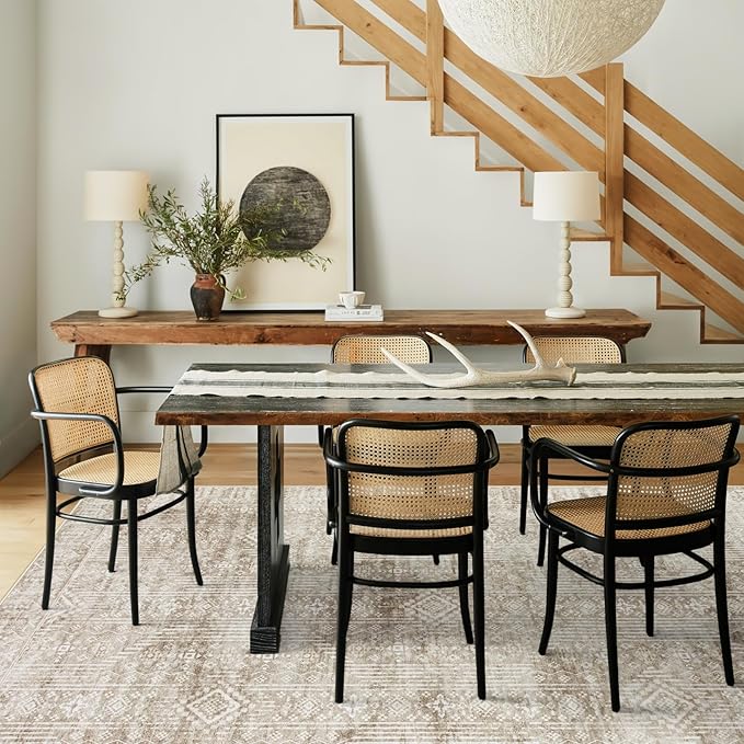 - [Machine Washable] Dust and dirt are easily removed from boho living room rug and spills can be wiped up immediately. Daily vacuum cleaning is enough. For deep cleaning, it is recommended to machine wash in cold water with a neutral detergent