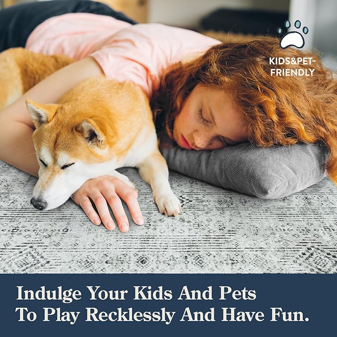 - [Non-Slip & Safe Rug] The TPE Non-Slip rubber backing can prevent our boho living room rug from moving across the floor. The strong grip of the bottom can effectively prevent children from slipping and prevent heavy traffic from scuffing the floor