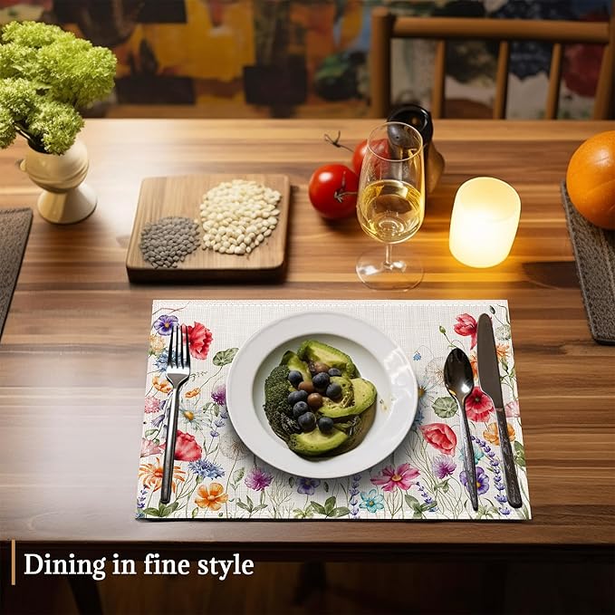 Watercolor Floral Chamomile Lavender Flowers Placemats Set of 6 Place Mats for Kitchen Table Washable Farmhouse Linen Table Mats Dining Decoration 12x18 Inch