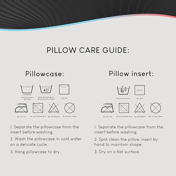 - To wash remove filling insert from casing using invisible zipper. Clean pillow case separately, machine wash on delicate with cold water and mild detergent. For best quality hang dry. Pillow insert is spot clean only.