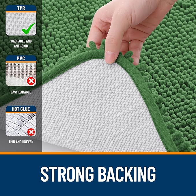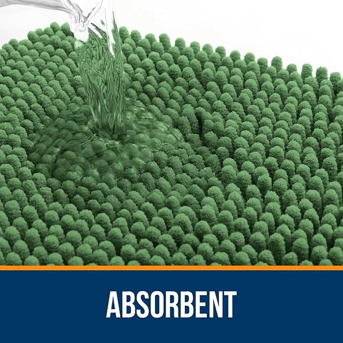 OLANLY Bathroom Rugs 47x24, Extra Soft Absorbent Chenille Bath Rugs, Rubber Backing Quick Dry, Machine Washable Bath Mats for Bathroom Floor, Tub and Shower, Home Decor Accessories, Olive Green