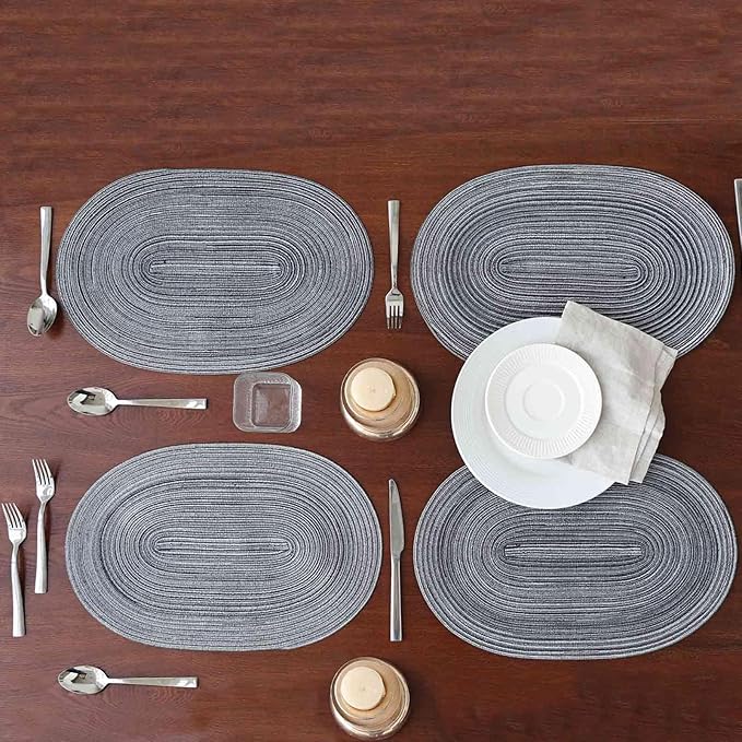 Noctiflorous Oval Braided Placemats Set of 4 Woven 12x18 Inch Non Slip Washable Heat Resistant Place Mats Tablemats for Dining Kitchen Party Daily Table Decor Dinner Mats (Black Gray, 4)