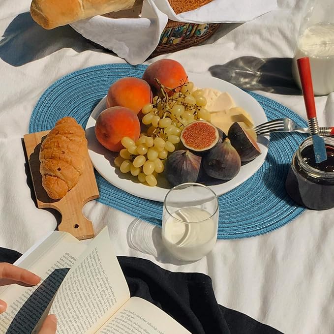 Noctiflorous Oval Braided Placemats Set of 8 Woven 12x18 Inch Non Slip Washable Heat Resistant Place Mats Tablemats for Dining Kitchen Party Daily Table Decor Dinner Mats (Teal Blue, 8)
