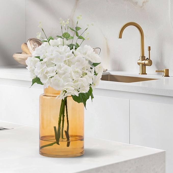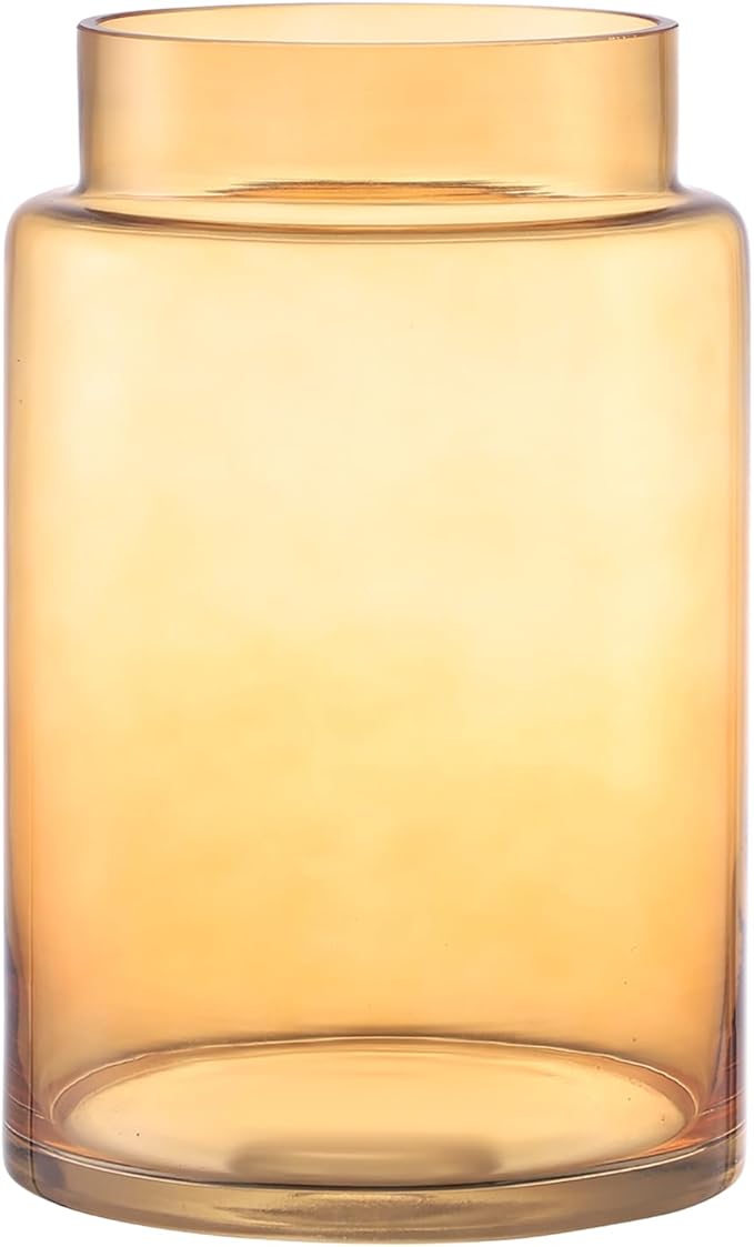 Large Glass Vase, 9 Inch Amber Glass Vase, Large Flower Vases for Bouquet, Tall Wide Mouth Vases for Flowers, Home, Wedding, Living Room, Office Decor