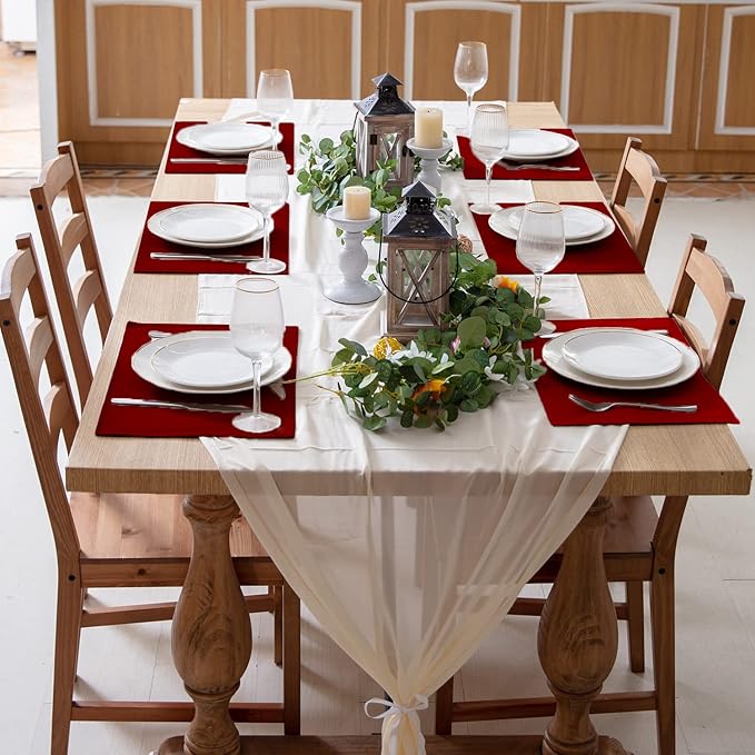 - [PACKAGE AND SIZE] One pack includes 6 pieces of cloth placemats and Each Measures 17.7"*11.8" (45cmX30cm). NO napkins included.