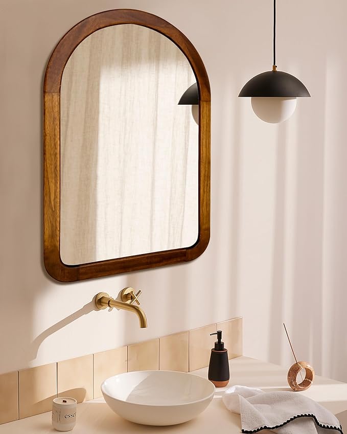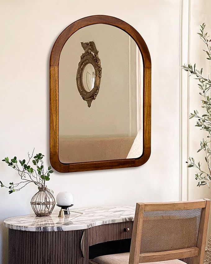Arched Mirror 24 x 36 Inch,Brown Wood Rustic Bathroom Tempered Wall Mirror with Wood Frame,Round Corner Arch Farmhouse Wooden Vanity Mirror for Living Room,Entryway or Bedroom(Walnut Brown)
