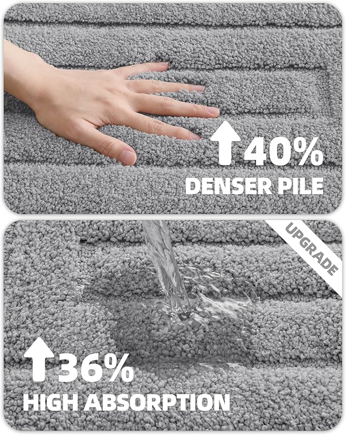 - Superior Absorbency: This bathroom mat is designed with highly absorbent materials and a denser pile that quickly soaks up water, reducing the risk of slippery floors; nothing is better than stepping onto a soft, dry rug after a bath