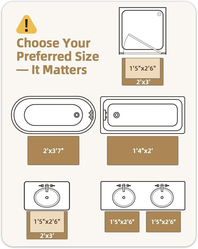 - Stylish and Practical: Available in a range of classic colors and with a simple design, this bathroom carpet not only serves its functional purpose but also complements bathroom decor nicely, adding a touch of style to your space; having several sizes to choose from, standard, large or runner, you can easily find a perfect size to fit in front of the single or double sinks, showers, bathtubs, vanities and more