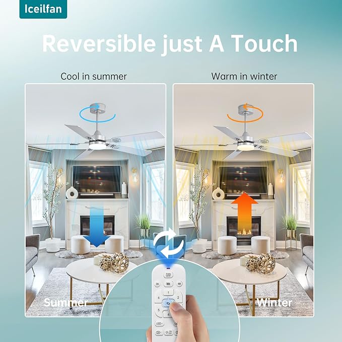 - Convenience on Demand:The Iceilfan bedroom ceiling fan can independently control fan speed,light options,setting memory,2H/4H timer,No need to get up to turn every time,Colse the "BiBi" sound by press the mute button.The included remote holder keeps your control tidy,It like a wall switch after fixed.