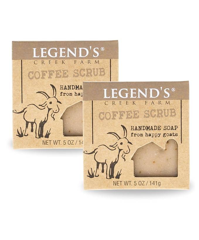 Legend's Creek Farm Goat Milk Soap - Cleansing Moisturizing Soap Bar for Hands and Body - 5 Oz Creamy Lather, Nourishing, Gentle Natural Soap for Sensitive Skin (Coffee Scrub, Pack of 2)