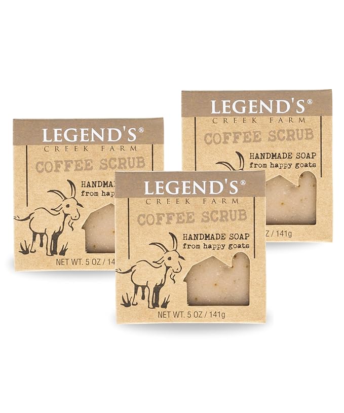 Legend's Creek Farm Goat Milk Soap - Cleansing Moisturizing Soap Bar for Hands and Body - 5 Oz Creamy Lather, Nourishing, Gentle Natural Soap for Sensitive Skin (Coffee Scrub, Pack of 3)