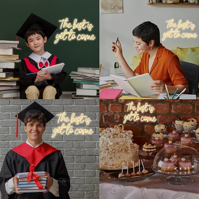 - THE BEST IS YET TO COME: We used these heartwarming words as the material to create this neon sign. Warm white lighting in a variety of occasions can create a warm atmosphere, and it's a good choice for decoration.