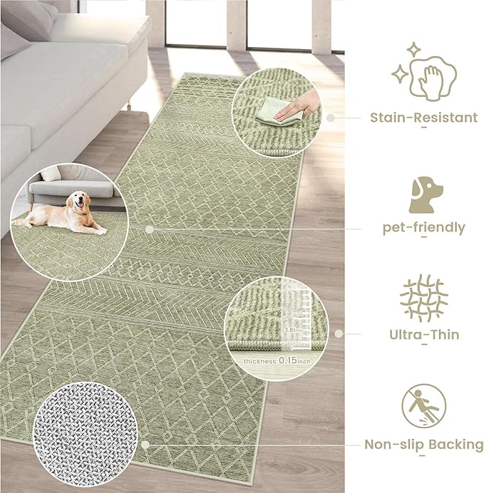 - NON-SLIP BACKING: This washable rug 2x6 features a TPE anti-slip backing, ensuring it stays securely in place on various floor surfaces. Perfect for homes with elderly members, kids and pets, you can rely on its stability even in high-traffic areas.