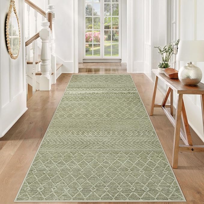 - BOHO GEOMETRIC RUNNER RUG: Highlighting a printed pattern, this runner rug presents a Moroccan-inspired design that seamlessly integrates geometric stripes and shapes. Distinct from conventional woven rugs, this rug is distinguished by its high-quality digital printing, which ensures crisp and lively details. The genuine colors of this Moroccan rug are displayed in neutral tones, guaranteeing that it matches the vibrancy and clarity as depicted in the image.