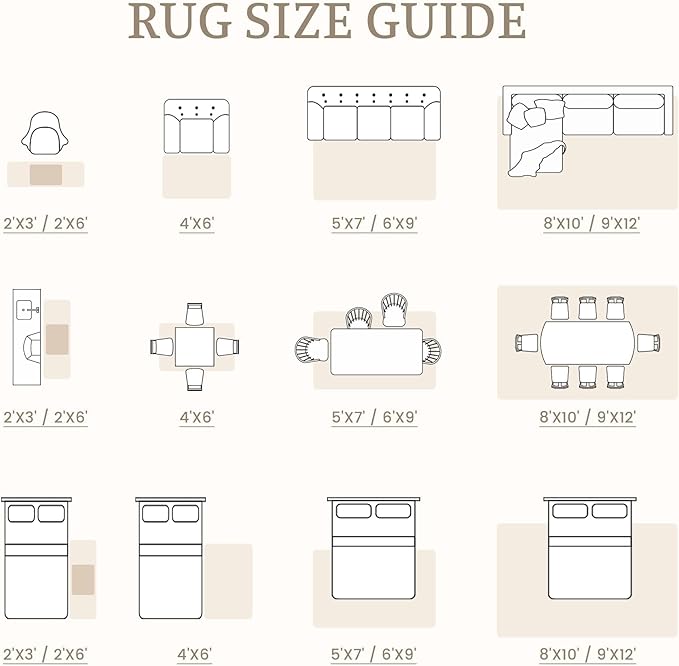 - VERSATILE INDOOR RUG: This beige rug 8x10 is woven tightly and it is more durable to crushing or matting. It has functional sizes for various decor needs. Multi-scene rugs for living room, bedroom, home office.