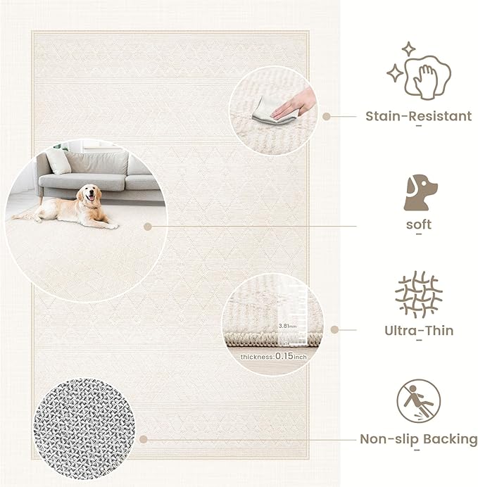 - MACHINE WASHABLE RUG: This area rug can be machine washable, robot vacuum cleaned, and wipe cleaned. Crafted with anti-stain fabric, this lightweight rug resists liquids like water, coffee, milk and pet urine, ensuring a consistently fresh-looking home.