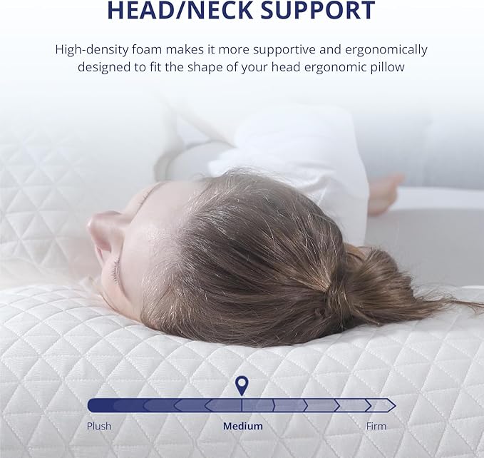 - PAIN RELIEF & STRESS REDUCTION: This memory foam pillow is medium and supportive. The sleep pillow conforms to the contours of your head/shoulder/back and evenly supports you to relieve head/shoulder/back pain, in addition to relieving a wide range of sleep problems.