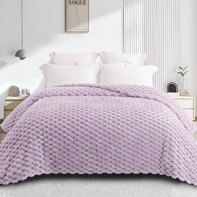 Whale Flotilla King Size Blanket for Bed with Jacquard Pattern, Fuzzy Soft Cozy Exquisite Blankets for All Season, Warm and Fluffy, 90x104 Inch, Lilac