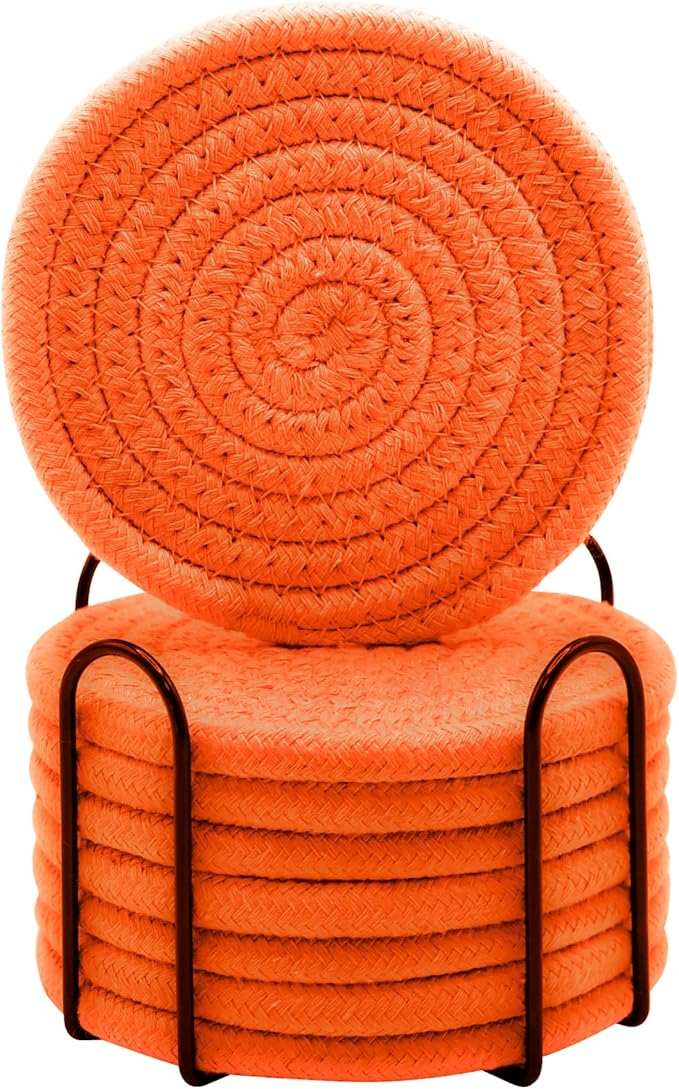 ABenkle 8 Pcs Drink Coasters with Holder, Cotton Woven Absorbent Coasters for Drinks, Minimalist Home Decor Coaster Set for Wooden Tabletop Protection Table, 4.3 inches