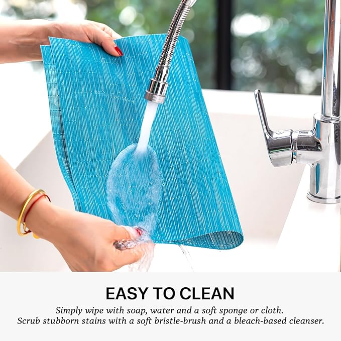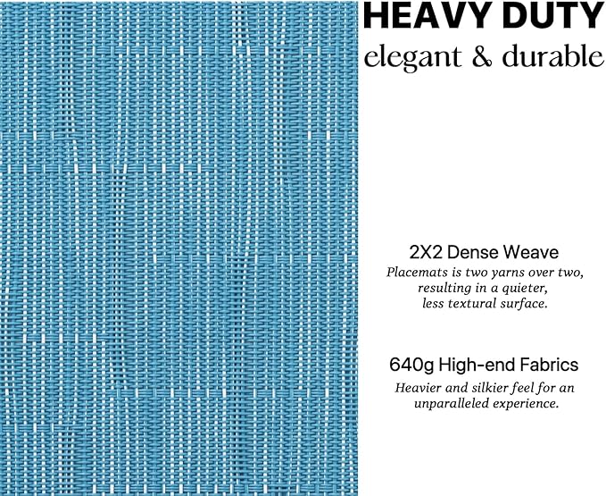 LEXMORE PVC Woven Placemats 6 PCS Wipeable Indoor/Outdoor Table Mats Washable Vinyl Place Mats for Dining Table, Set of 6-Teal Blue