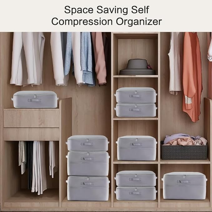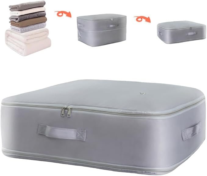 Ultra Space Saving Self Compression Storage Bags with Zipper, (Grey) -Compression Organize for Bedding, Comforter Storage Bag for Blankets Duvet Quilts Pillows