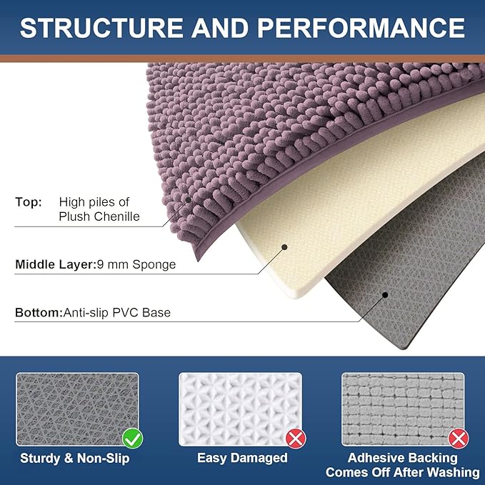 - [Non-Slip Backing] Our bath rugs feature a non-slip backing made from good quality mesh PVC, providing a secure grip that avoid shifting and skidding. Important: Place on CLEAN DRY FLAT FLOOR ONLY to avoid slipping. Keep the rug's bottom dry at all times.
