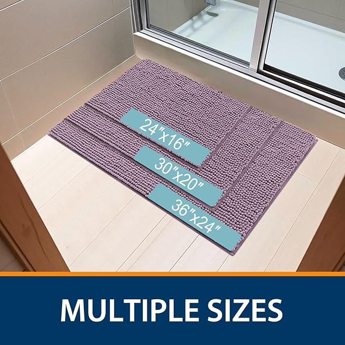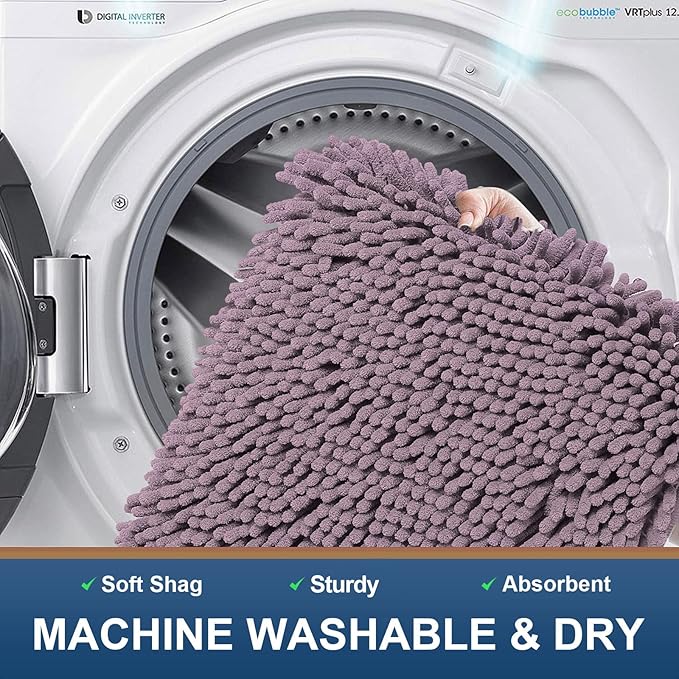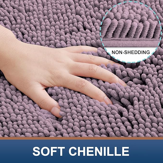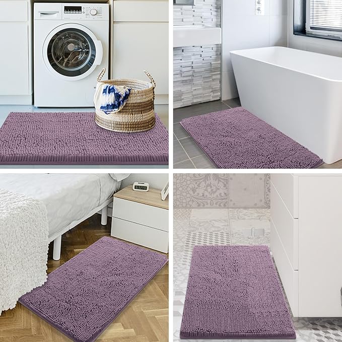 Smiry Luxury Chenille Bathroom Rugs 30x20, Extra Soft and Absorbent Shaggy Bath Mat, Machine Washable, Non-Slip Plush Carpet Runner for Tub, Shower, and Floor, Home Decor Accessories, Deep Plum