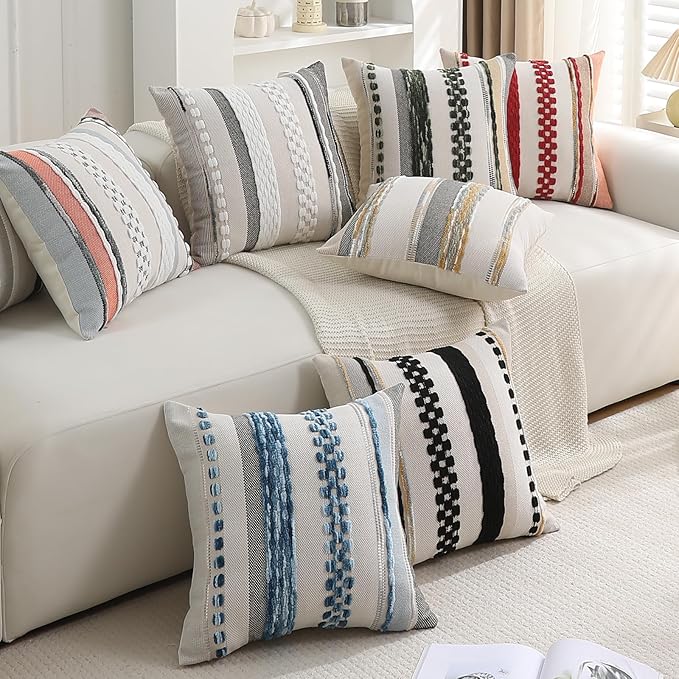 - 【Unique Color-blocking Design】 : The multicolored sofa pillow covers meet most of home decor demands, match furniture of various colors and styles, provide with more decor idea. Buying one is equivalent to buying three, our 18x18 pillow cover boho is worthy !