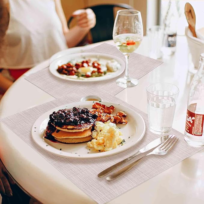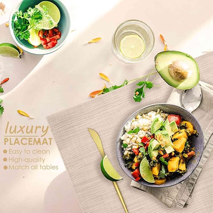 GIVERARE Placemats Set of 4, Heat-Resistant Woven Vinyl Placemat 12x18in, Non-Slip Washable PVC Table Mat, Easy to Clean Premium Plastic Mats for Dining, Kitchen Table (Beige)
