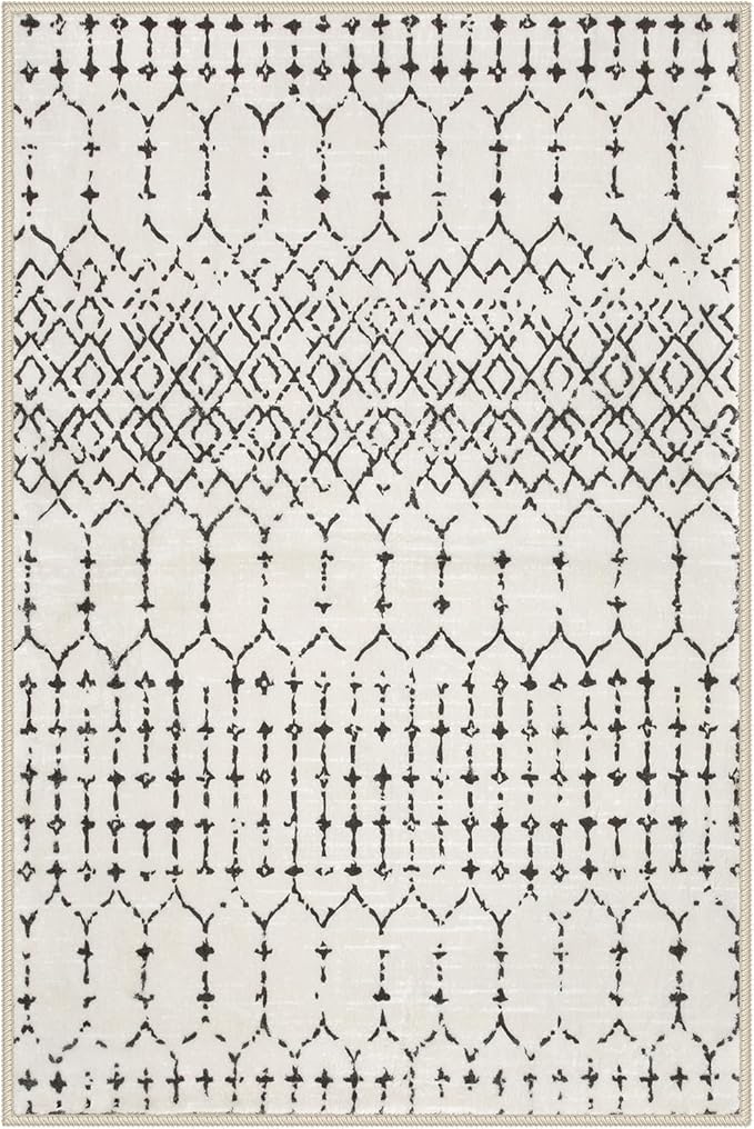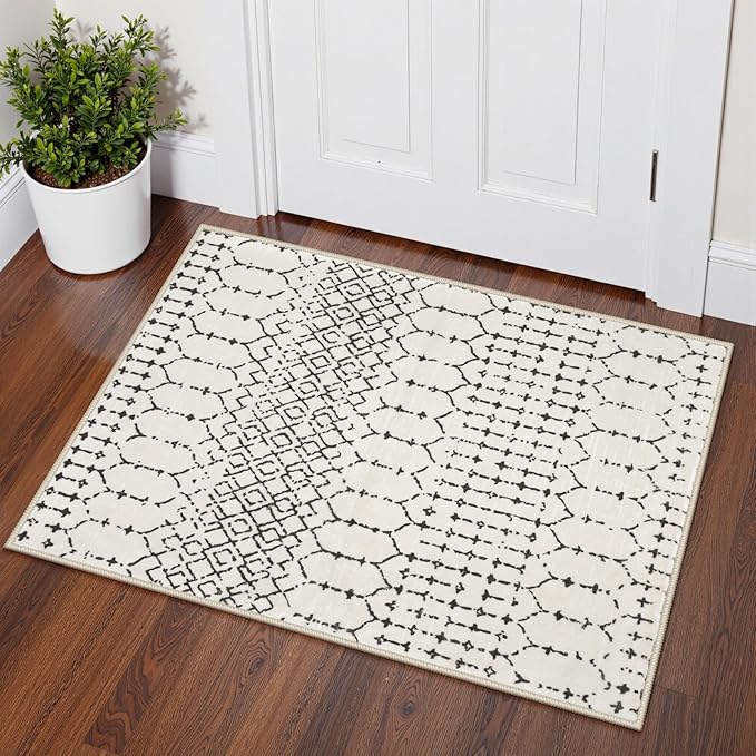 Lahome Moroccan Front Door Rugs Indoor 2x3 Non-Slip Washable Door Mats Indoor Rubber Backing Untra-Thin Beige Small Kitchen Rug, Geometric Print Inside Door Mats for Home Entrance Bathroom Sink
