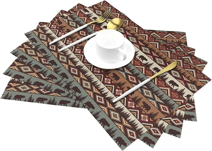 Vintage Rustic Placemats Bear Mountain Dining Table Mats Set of 4 Linen 12x18 Inch for Washable Holiday Party Dining Mat for Outdoor Farmhouse Home Kitchen Decor