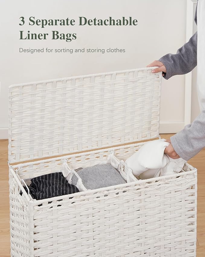 - Removable Liner Bags: The woven hamper with lid comes with 3 separate detachable and washable interlining bags for sorting different colors of clothing. Rattan hamper with lid has 6 additional laundry mesh bags for easier and cleaner washing