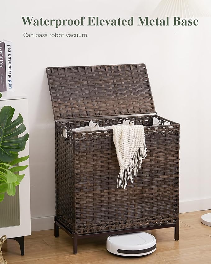 - Durable and stylish: The internal frame of the laundry basket is made of strong and thickened rust proof iron tube, the exterior of laundry basket with lid is hand-woven from PE material rattan. The wicker laundry basket is sturdy and stylish