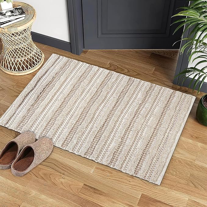 Cotton Rugs for Living Room 24x36 inches, Farmhouse Cotton Area Rug for Bedroom, Washable Tufted Indoor Floor Carpet for Kitchen Dorm Office Dining Room Office Home Decor, Off White Natural