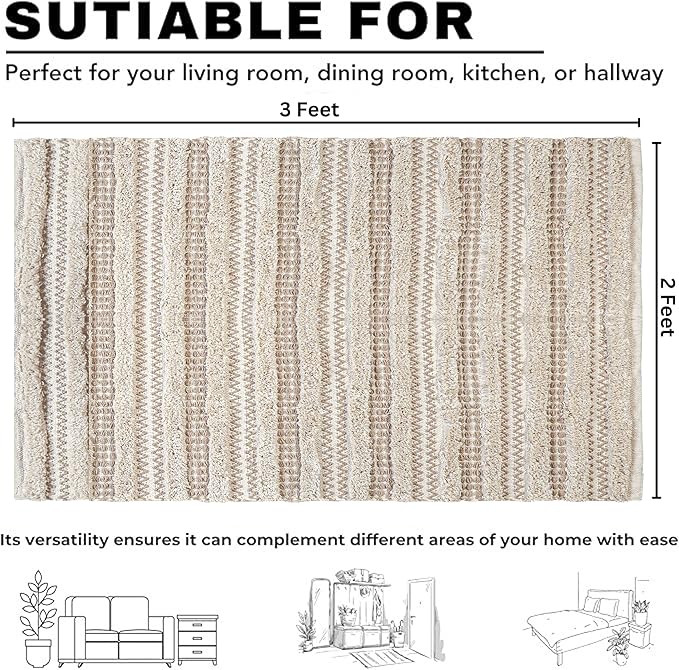 - Perfect Size: Measuring 24x36 inches (2x3 feet), this rug is thoughtfully sized to fit well in various spaces, such as the living room, bedroom, or entryway. Its versatility ensures it can complement different areas of your home with ease.