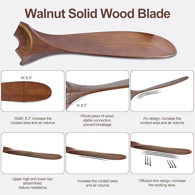 52" Ceiling Fans with Lights, 52 inch Ceiling Fan with Lights, High cfm Quiet 3 Blade Wood Walnut Ceiling Fan, Large Modern Ceiling Fan with Remote, Propeller Fans for Patios,Dark Walnut