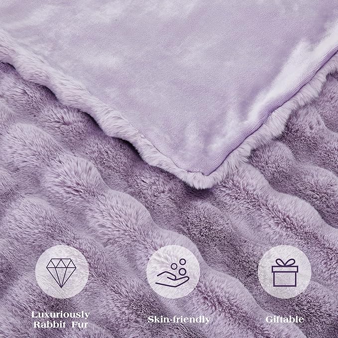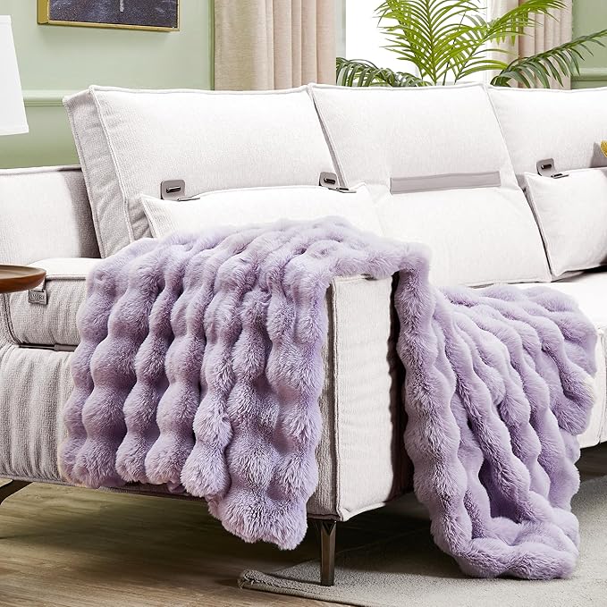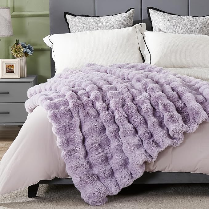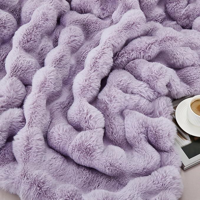 JONIYEAR Soft Fluffy Oversized Bubble Faux Rabbit Fur Throw Blanket 60" x 70", Reversible Solid Thick Warm Fuzzy Blanket for Winter, Luxury Cozy Shaggy Furry Blankets for Bed, Twin Size, Lilac Purple