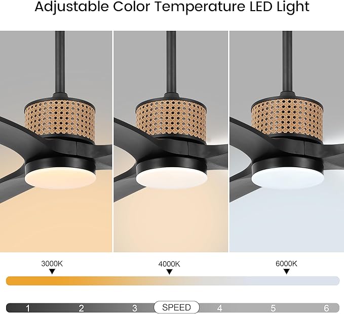 - Unique Rattan Design - This ceiling fan has a unique rattan design, paired with 3 solid wood blades, perfectly combining modern and retro styles. Four colors and two designs are available. No matter what style your room is, you can find a ceiling fan that suits it very well.