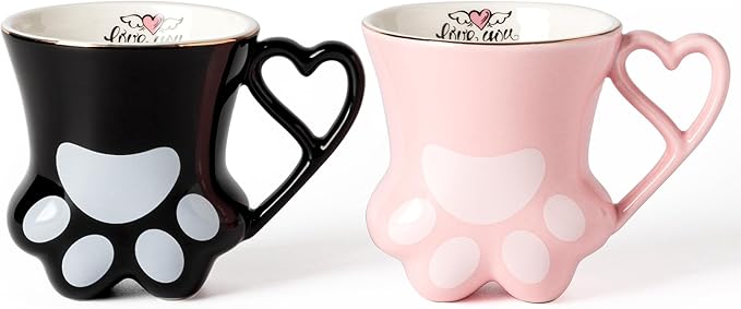 Cat Paw Coffee Mug - Pink and Black Set of 2, Perfect for Cat Lovers, Enjoy Your Coffee with These Cute Cat Paw Mugs, 10oz, Couple&Wedding, Best Festival Gifts(Black&Pink)