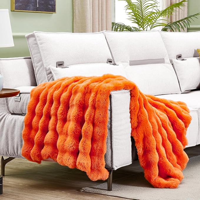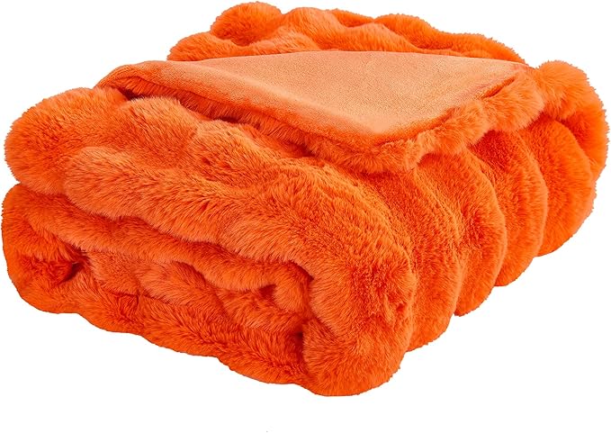 JONIYEAR Solid Fall Oversized Fuzzy Bubble Faux Rabbit Fur Throw Blanket for Bed 60" x 70", Decorative Puffy Warm Fuzzy Blanket for Winter, Thick Shaggy Cozy Furry Blankets for Adult,Twin Size, Orange
