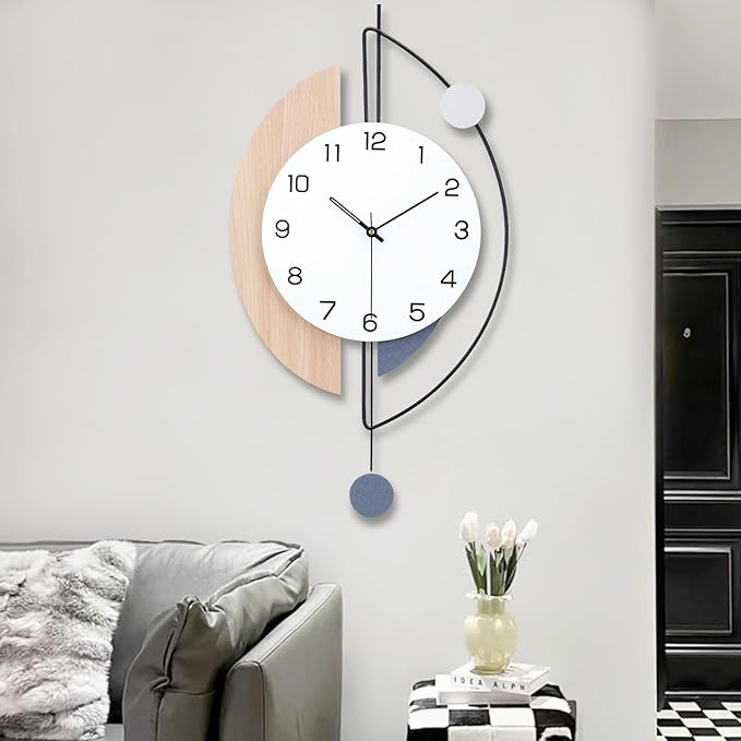 - 【Wall Clock with Pendulum】-Metal pointers with a creative linen texture pendulum design,combination of light yellow(wood color)and navy blue,more elegant and generous.This wall clock features a modern style, using sailboats as design elements, unique and nice-looking, with a beautiful meaning of smooth sailing and everything going well, perfectly for your living room,kitchen,bedroom, is a scenic line on the wall and high-quality decorations.